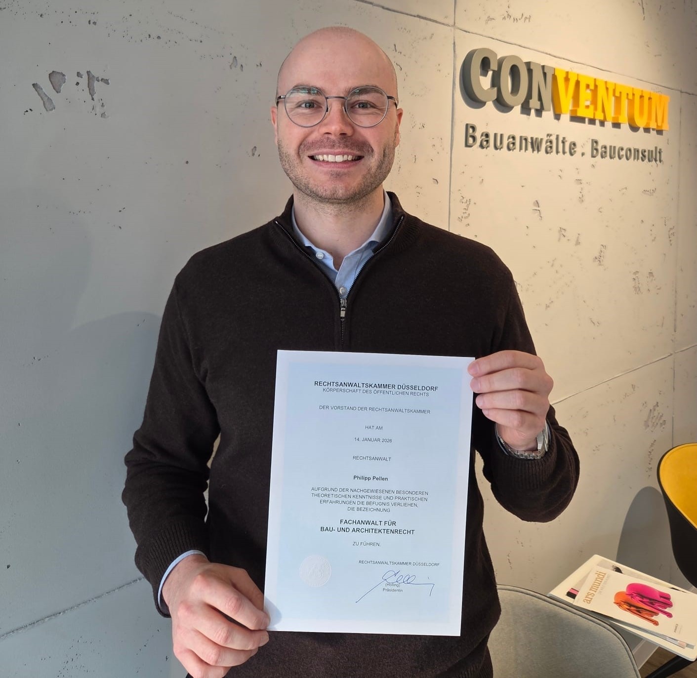 CONVENTUM ist ein Team von langjährig erfahrenen, hochspezialisierten Bau- und Vergaberechtlern mit Sitz im Düsseldorfer Medienhafen. Wir beraten deutschlandweit mittelständische Bauunternehmen, öffentliche Auftraggeber sowie Planer in jeder Phase eines Bauprojekts – von der Vergabe und Vertragsgestaltung über die baubegleitende Beratung bis hin zur Schlusszahlung und Gewährleistung.